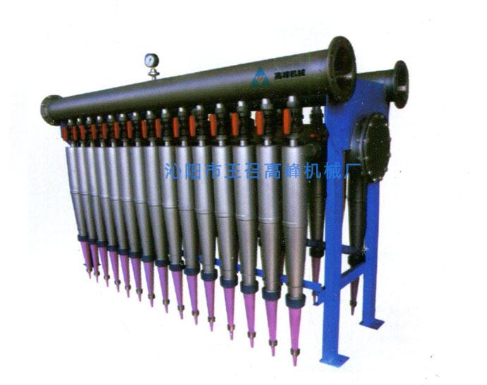 高浓除渣器是利用纤维与杂质比重不同来分离杂质的。浆料以一定压力由进料三通切线进入除渣器后高速旋转,由于离心力的不同,重杂质被甩向器壁,在重力作用下,渐渐向锥底运行,进入沉渣罐。纤维由于离心力较小,逐渐向中心低压区运行,到达底部后涡旋上升,最后由良浆口排出。高浓除渣器的锥体具有一定锥度,且锥体较长,浆料在锥体内旋转半径逐渐减小,避免浆流在旋转过程中速度降低,保证离心力得到加强,因而提高了纸料的净化效率。底部平衡水压力略大于浆料压力,使纤维不能进入沉渣罐,只有砂粒、金属颗粒、胶块、塑料等重杂质沉入罐内,减少了纤维流失。
