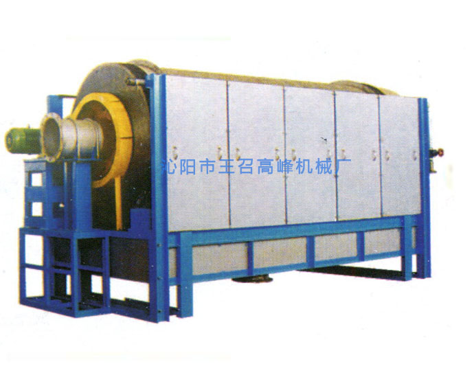物料从圆筒的一端给入,细级别物料从筒形工作表面的筛孔通过,粗粒物料从圆筒的另一端排出。圆筒筛的转速很低、工作平稳、动力平衡好。但是其筛孔易堵塞、筛分效率低,工作面积小,生产率低。选矿厂很少用它来作筛分设备。